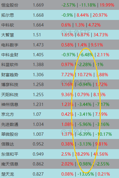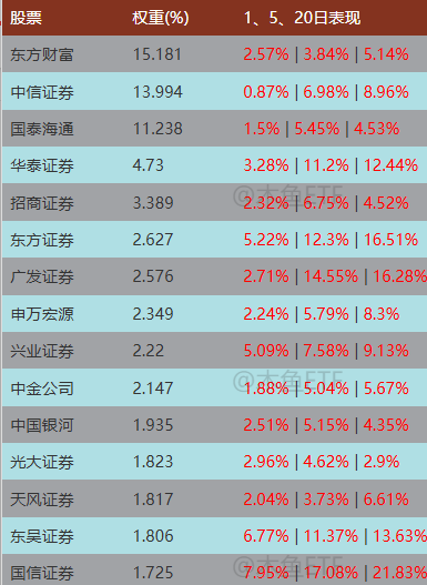 打开成分股列表,观察其近期表现,我们可以总结一下。