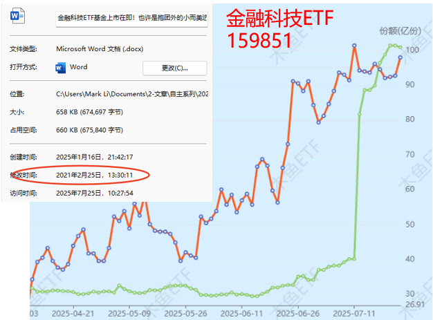 对于金融科技ETF,我们有着深厚的感情。2021年2月其上市前夕,我们就抢先做评测,至今记忆犹新。而四年多以来,眼看金融科技ETF逐渐被更多朋友认可。而159851这只的份额持续扩大(还拆分一次)突破百亿,成为市场主流品种。