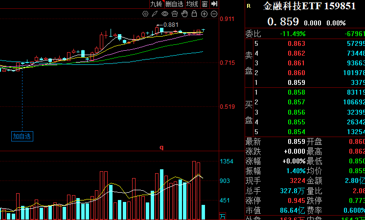 然而近期走势可能多少让不少朋友困惑了,159851这只主力品种成交额倒是连续10亿以上,但是没有新高!