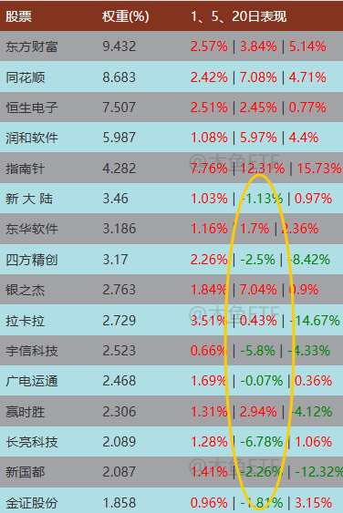 观察其成分股表现,东方财富竟貌似是最“稳”的那个。我们一直有个猜测:市场在控温,东财是抓手。