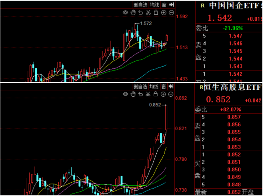 以上数据和分析都是参考价值,从长投角度港股类红利主题ETF更有道理。从短投角度抱团行情参与不太好下手,还有一点:港股指数9点20分就刷新了,而9点25分A股才竞价,这5分钟导致短线预期差不太好打出来。因此,投港股来点格局,可能更理性、高股息、红利这些拿得越久税费越低,更是如此。