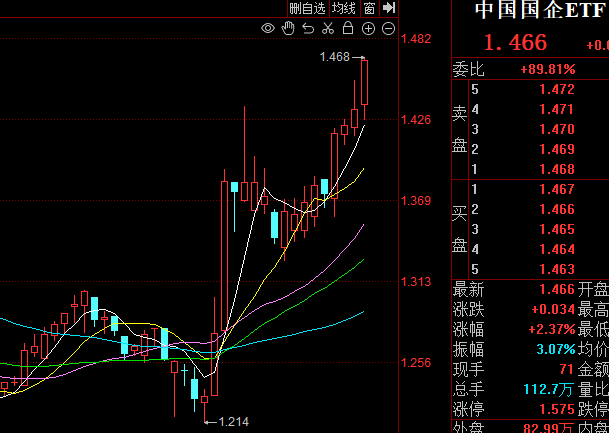 中国国企也是共赢系列ETF,是我们说过最接近中特估特点的ETF,三桶油、三大运营商、四大行配置合理,现在走势也很凶。