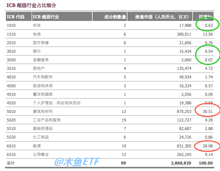 从行业分布来看,建筑和能源权重占据总体的60%,而其他很多行业的权重小得可怜。可以这么说,共赢ETF应该说是一只行业特色比较鲜明的主题类ETF,就是能源和建筑属性,非常传统的行业。