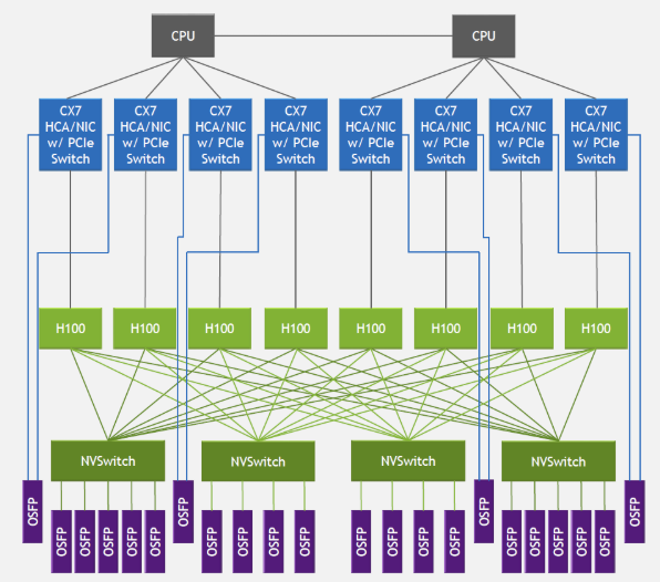 为了让AI芯片实现N+N=2N的输出,用高速铜缆或CPO(光模块)把它们互联在一起(集群)。