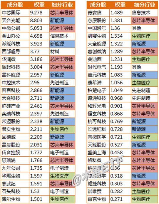 上图是4个多月前科创50的行业占比,是木鱼手工计算的,那是芯片半导体占1/3,新能源(含光伏、储能、锂电等)占差不多1/4,生物医药和信息技术也有相当比例。