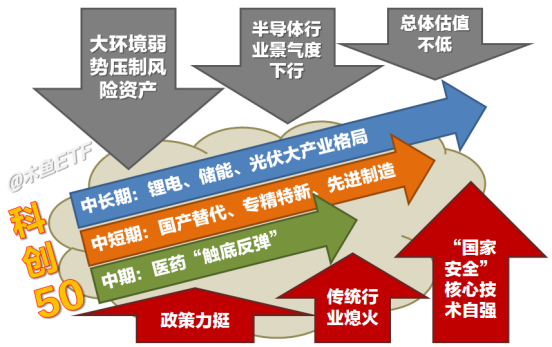 总的来说,现在的科创50属于6成成色的“硬”派科技ETF,再加上3成的长期景气主题新能源ETF。