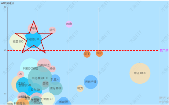从技术上来看,科创50目前位于天梯图的“第二象限”,也就是走势好且相对估值位置较低的位置,技术和基本面上短期也有支撑,不破景气线先不担心。